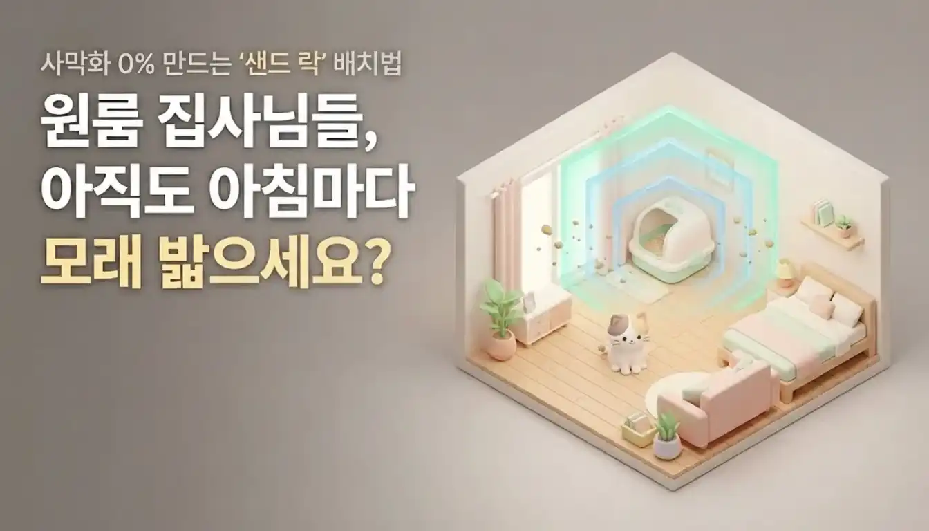많은 분들이 비싼 사막화 방지 매트 하나 깔면 해결되겠지?라고 생각하세요. 하지만 제가 장담하는데, 단순히 매트만 깐다고 해결될 문제가 아닙니다. 이건 장비의 문제가 아니라 구조의 문제거든요. 오늘은 제가 수많은 시행착오 끝에 완성한, 6평 원룸에서도 모래가 절대 방으로 넘어오지 못하게 막는 샌드 락(Sand-Lock) 시스템을 여러분께만 살짝 공개해 드리려고 해요. 이제 돌돌이 지옥에서 탈출해 볼까요?