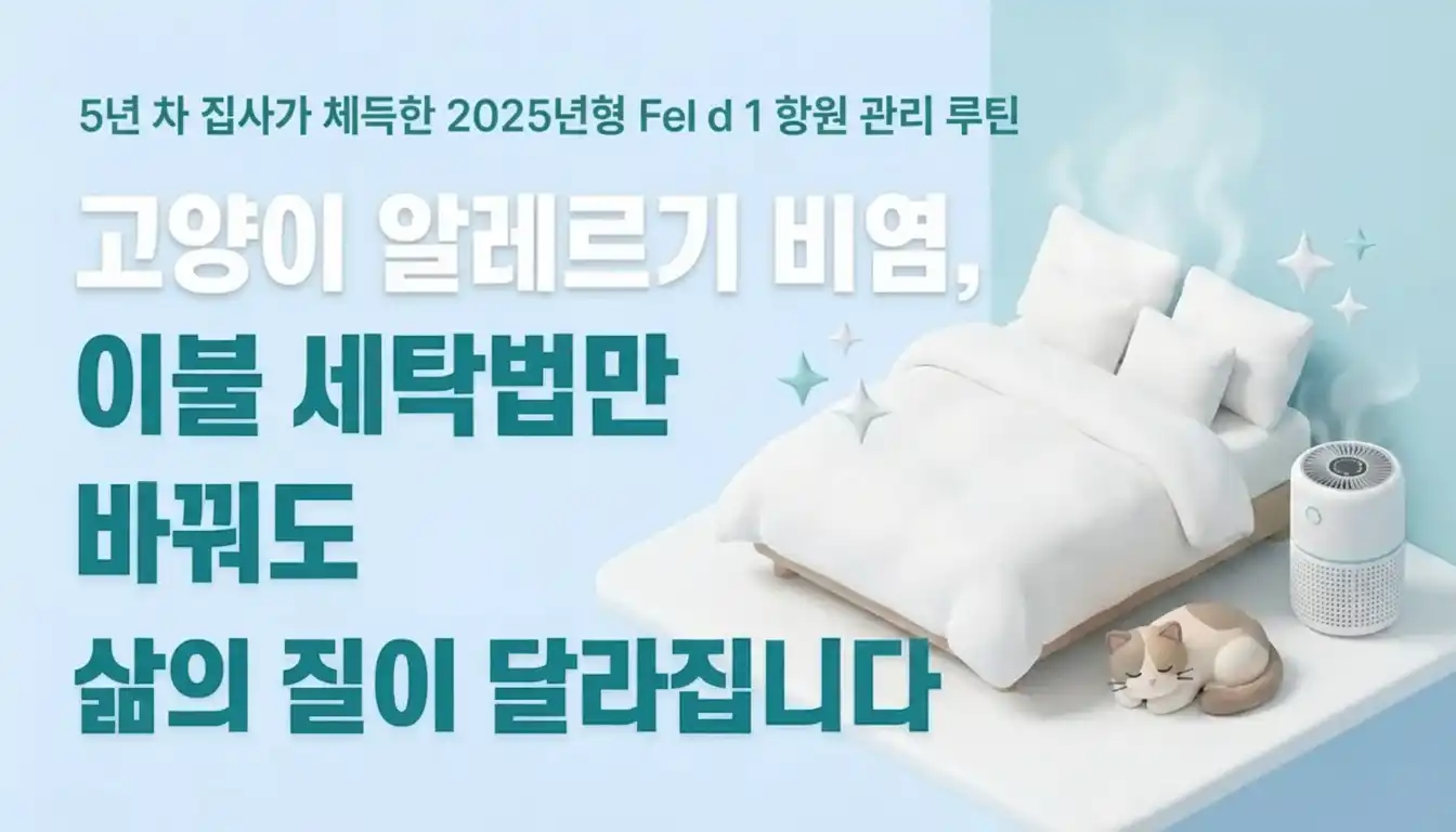 우리가 덮고 자는 이불은 단순히 털이 묻은 천이 아니라, 내 몸에서 나온 땀(습기)과 각질, 그리고 고양이의 항원이 뒤섞여 집먼지진드기가 폭발적으로 증식하는 최적의 배양소였던 셈입니다. 찬물에 대충 빨거나 돌돌이만 문질러서는 절대 증상이 완화되지 않는 이유가 바로 여기에 있습니다. 적을 정확히 알아야 비로소 관리의 길이 열립니다.