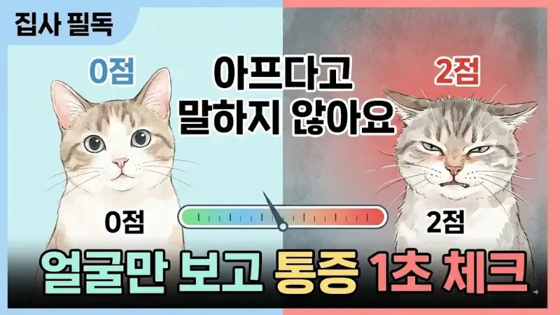 그리고 위 본문의 [FGS 채점표]를 보며 점수를 매겨보세요. 만약 점수가 4점 이상이거나, 수염이 빳빳하게 서 있고 미간을 찌푸리고 있다면, 더 이상 "피곤한가 보다"라고 넘기지 마시고 병원 진료를 예약하세요. 당신의 예민한 관찰력이 고양이를 고통의 시간에서 구해줄 수 있습니다.