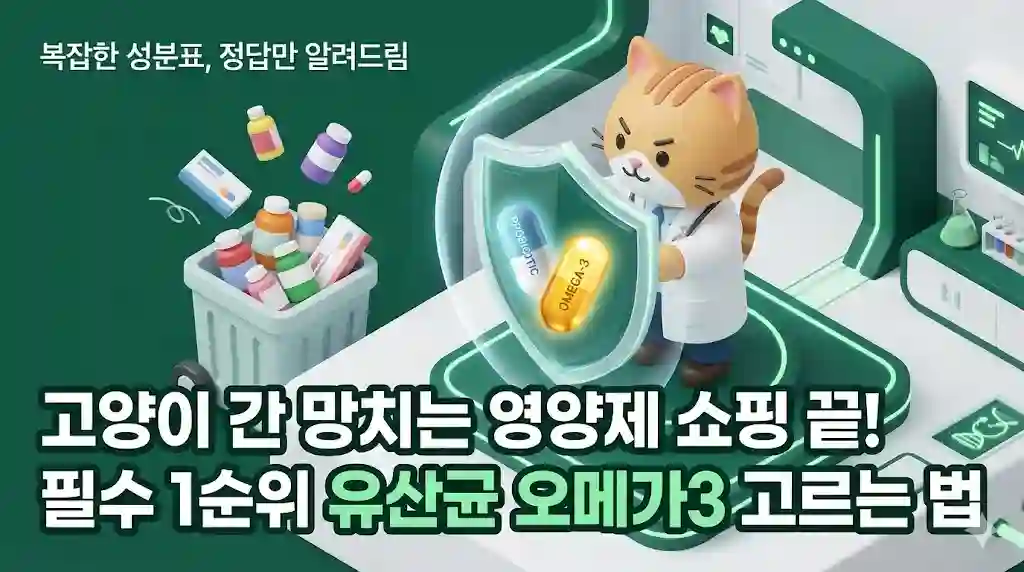 사랑하는 고양이를 위해 매달 10만 원씩 사들이는 영양제가 오히려 아이의 간과 신장을 망치고 있을 수 있습니다. 복잡한 상술은 다 빼고, 수의사들이 입을 모아 강조하는 진짜 필수 1순위 고양이 영양제 유산균과 오메가 3의 명쾌한 선택 기준을 지금 바로 알려드립니다.